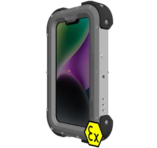 Compliance with ATEX / EX regulations is achieved by modification of the casing together with the safe electrical circuit, which makes the smartphones suitable for safe use in Zone 1/21 hazardous locations. All features of the original product are preserved. The EX iPhone can be wired or wireless charged in a safe area.