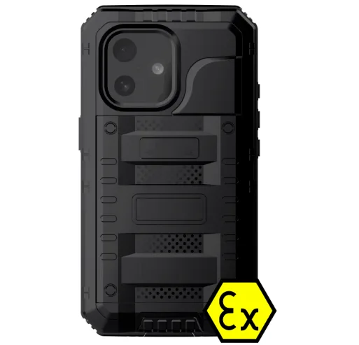 Compliance with ATEX / EX regulations is achieved by modification of the casing together with the intrinsically safe electrical circuit, which makes the smart phones suitable for safe use in hazardous locations. All features of the original product are preserved. Even the face ID can be used safely at hazardous locations.